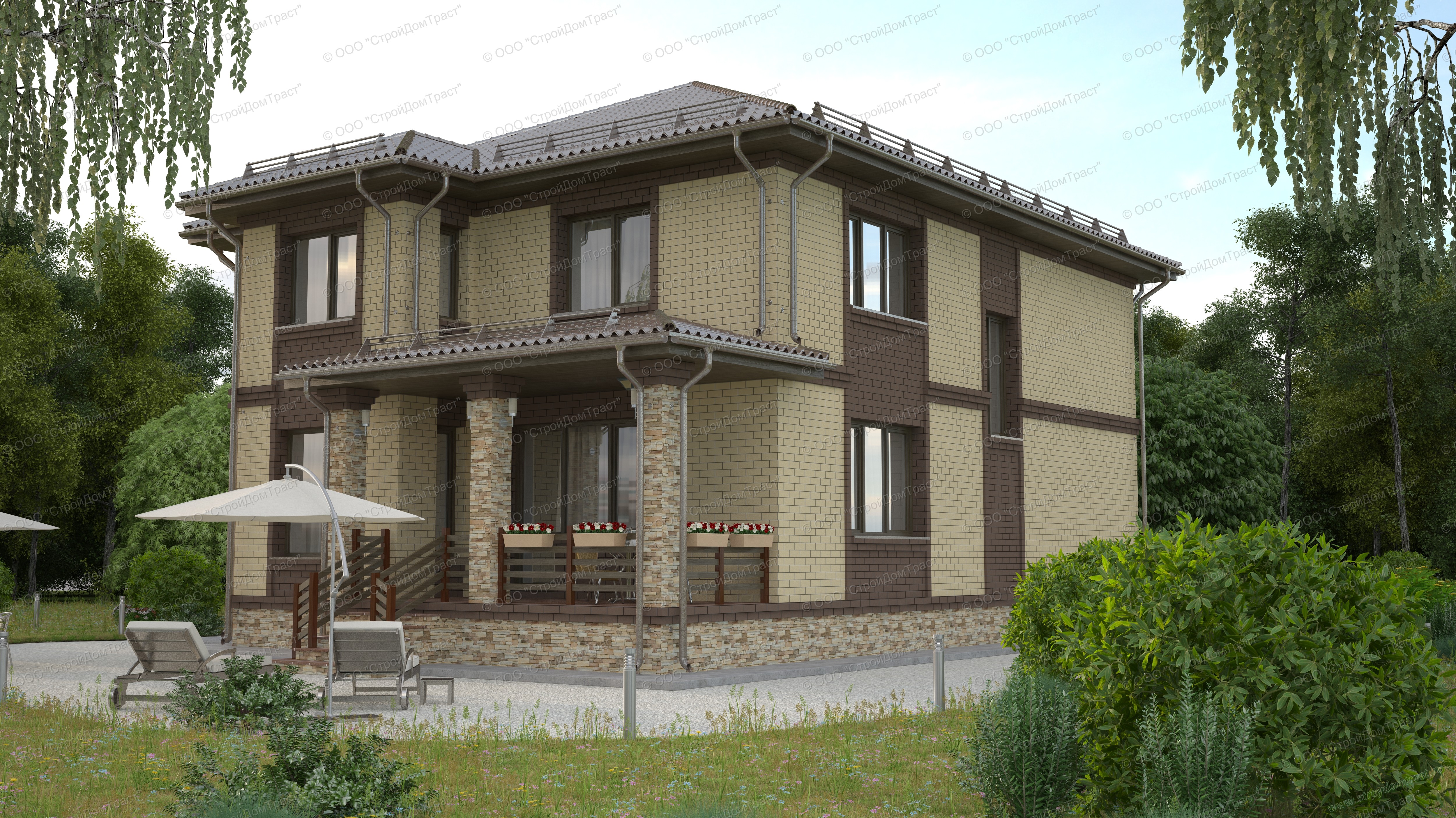 Этот современный коттедж придется по вкусу практичным людям, предпочитающим простые архитектурные формы. Отделка фасада лицевым кирпичом + 935 000 рублей к цене. Фасад дома оформлен с помощью...