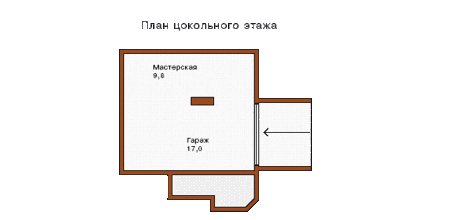 На мансардном этаже проектом предусмотрена одна просторная спальня, которая при желании может быть поделена перегородкой на две меньшие по площади комнаты. На цокольном этаже оборудован встроенный гараж для одной автомашины и мастерская.