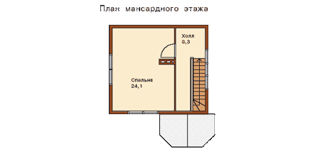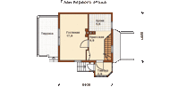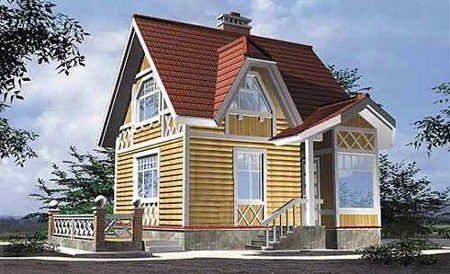 Очень компактный дачный домик из экологичного материала, рубленого бревна, с цокольным этажом и частичными удобствами предназначен для строительства на небольших садовых участках. Проект отличается выразительным и запоминающимся внешним обликом благодаря оригинальным мансардным окнам, колоритной отделке фасада и уютной террасе, обустроенной со стороны дома, выходящей в сад.