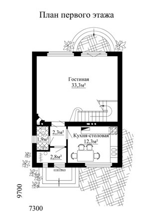 Этот компактный дом из кирпича отлично подходит для небольших участков. Небольшой снаружи (всего 7 на 10 метров), он обладает очень просторным интерьером (см. планировку), пригодным не только для одиночного семейного проживания, но и для приёма гостей. На первом этаже располагается кухня-столовая и гостиная, на втором — спальни. Планировка дома может быть доработана при строительстве, хотя готовый вариант является самым разумным и удобным. Очень немногие могут похвастать наличием большого земельного участка для строительства особенно в удачно расположенном месте. Поэтому данный проект идеально подходит.