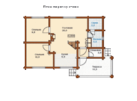 Проект загородного коттеджа из дерева небольшого размера с общей площадью всего 82,6 кв. м. идеально подойдет при выборе дома для сезонного отдыха. Этот особняк имеет приятную внутреннюю планировку, позволяющую с комфортом разместиться в доме небольшой компанией из 4-6 человек. Наличие мансардного этажа позволяет визуально расширить пространство за счет второго света над гостиной комнатой.