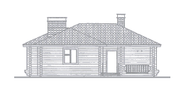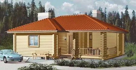 Одноэтажный бревенчатый коттедж, отлично подходящий под вспомогательный особнячок на время строительства основного коттеджа или для загородного семейного отдыха. Так же этот бревенчатый дом станет прекрасным банным комплексом. Площадь постройки всего 60,1 кв. м., что позволяет отвести под воплощение проекта совершенно небольшое пространство. Просторная терраса справа от парадного входа станет идеальным местом для барбекю или просто совместного отдыха на свежем воздухе.