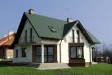 Современная архитектура здания поддерживается простотой линий, геометричностью, а также использованием широких окон, благодаря которым внутреннее пространство дома насыщается светом и неповторимой атмосферой. Небольшие французские балкончики второго этажа придают особую легкость строению, а мансардные окна обязательно привнесут свой шарм комнатам.