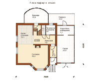 В гостиной с обогащенным интерьером эркером и камином вы сможете приятно провести время с семьей или встретить гостей. Через широкий проем можно пройти на территорию столовой и кухни. Такая концепция с переходящими друг в друга неразделенными комнатами не только создает ощущение дополнительного простора, но и действительно очень удобна. Выход на веранду осуществляется через лестничную клетку. Все личные помещения хозяев размещены на втором этаже. Общий холл объединяет спальни и общий санузел.