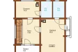 Через небольшую придомовую террасу площадью 5,6 кв. м. можно попасть в просторную прихожую, где находится вход в гостевой санузел. Вход в гостиную комнату предваряет достаточно большой тамбур размером 7,1 кв. м., где так же размещена лестница. В гостиной размером 22,2 кв. м. запроектирован угловой камин. Отсюда можно попасть в помещение кухни-столовой. Котельная в доме находится на первом этаже и имеет два входа, с улицы и непосредственно из прихожей особняка.