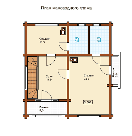 Проект дома 9х8,5 м из калиброванного бревна с мансардой