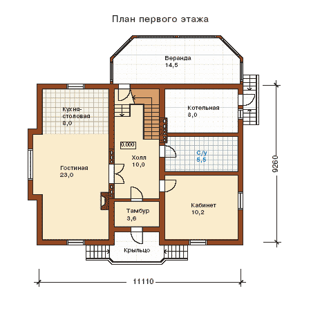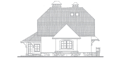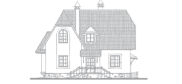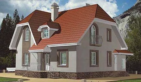 Этот особняк для загородного проживания может не только похвастаться компактностью своих форм и достаточно сбалансированными фасадами, но так же способен приютить немногочисленную семью составом до пяти человек, имеющую достаточно высокие требования к уровню комфорта. Парадный вход оснащен лестницей и крылечком. На втором этаже есть балкон, где можно постоять и насладиться великолепными видами.