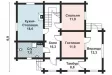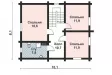 Кухня-столовая площадью 18 кв. м. оборудована домашним камином и находится на первом этаже. К ней примыкает довольно просторный санузел размером 7,8 кв. м. Через холл напротив размещен вход в небольшую гостиную комнату, размеры которой составляют 11,9 кв. м. Из нее свободно можно попасть на застекленную веранду. Спальня, размещенная на первом этаже и примыкающая к гостиной, имеет такой же размер в 11,9 кв. м. и позволяет переоборудовать ее в мастерскую или кабинет.