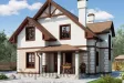Отделка фасада - декоративная штукатурка с элементами архитектурного декора и деревянными деталями.