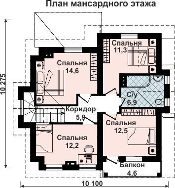 Высота этажей: Первого - 2,7м, мансарда - 3,0м