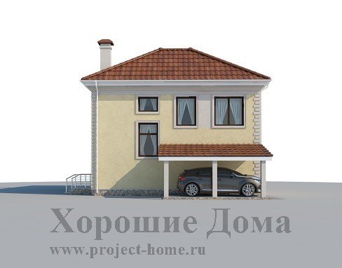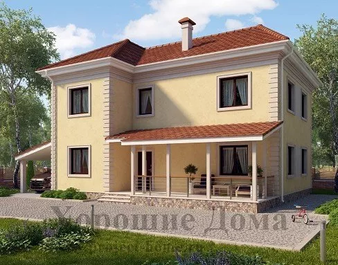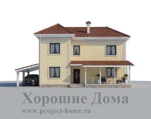Дом из газобетонных блоков с навесом для авто