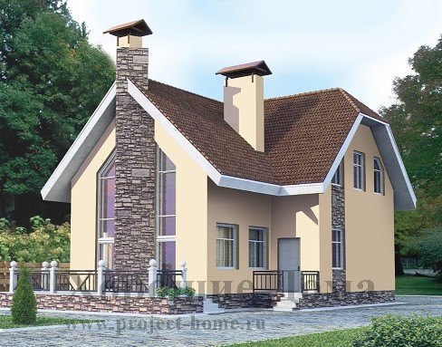 Проект оригинального по дизайну загородного коттеджа на одну семью предлагает площадь в 149 кв. м. Доминирующим элементом дизайна является очаровательная каминная труба, поднимающаяся вдоль всей боковой стены и величественно возвышающаяся над крышей особняка. Необычной формы длинные окна, вплотную размещенные вдоль трубы, придают особую изысканность этому и без того оригинальному дизайну.