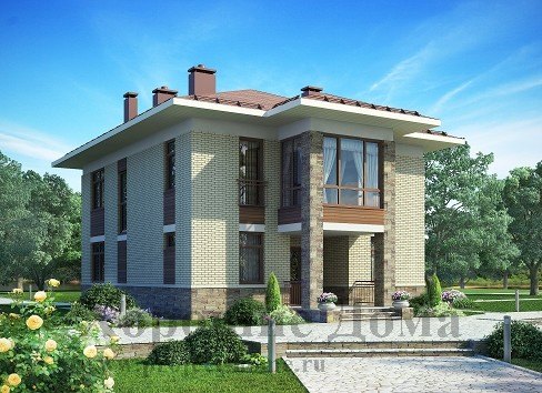 Отделка фасада - облицовочный кирпич и природный камень.