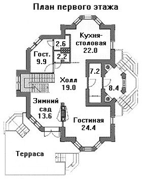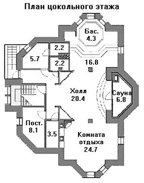 Цокольный этаж особняка полностью отдан под зону релакса и отдыха. В нем расположены: сауна, бассейн, комната отдыха и хозяйственные помещения. На первом этаже расположились зимний сад, гостиная и гостевая комнаты, кухня-столовая. Из зимнего сада есть выход на открытую террасу. Второй этаж представляет собой просторный холл, три спальни, гардеробные и ванную комнаты.
