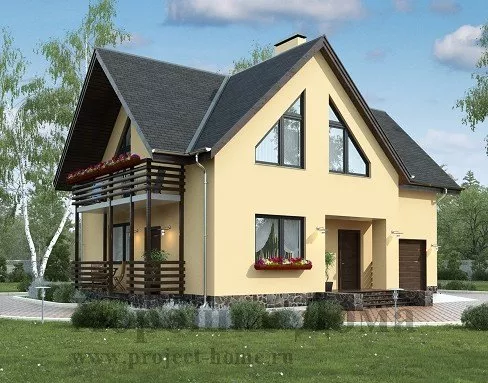 Интересный проект жилого небольшого загородного коттеджа из газобетона подойдет для размещения одной семьи и обеспечит комфортное существование даже в случае постоянного проживания. Этот коттедж имеет все самые необходимые помещения и позволяет постройку на участке даже самого небольшого размера. Гараж, являющийся частью дома, занимает площадь почти 20 кв. м. и отлично вмещает один большой автомобиль. Пространство надо гаражом входит в состав второго этажа, что не так часто встречается среди современных проектов особняков. Помещение котельной размещено сразу за гаражом и имеет собственный вход с улицы и второй – из гаража.