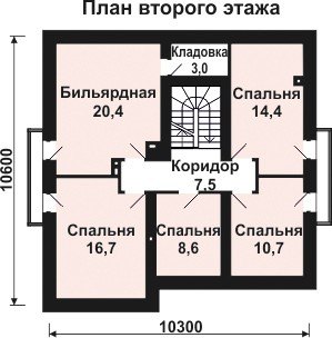 Четыре небольших и уютных спальни разместились на мансардном этаже, там же находится бильярдная, которая служит общей комнатой отдыха. Из помещения бильярдной можно попасть во вместительную кладовую комнату.