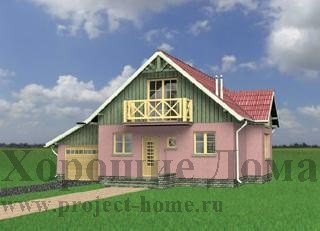 Небольшой загородный коттедж в стиле кантри отличается своей самобытностью и деревенским колоритом. Деревянные конструкции балконов, использование дерева в отделке, характерный дизайн фасада удачно дополняют внешний облик дома и позволяют ему органично вписаться в окружающий природный ландшафт. Гараж на одну автомашину выполнен в виде пристройки к основному объёму здания, и его кровля является логическим продолжением ската основной крыши.