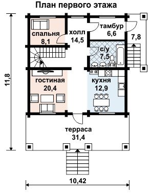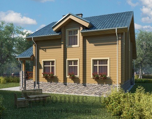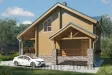 Очень выразительный и самобытный загородный коттедж по мотивам альпийского шале. Высокий оригинальный цоколь с отделкой из натурального камня, уютная терраса, защищённая от атмосферных воздействий далеко выступающим за объём здания скатом кровли, симпатичный балкон, выполненный в виде мансардного слухового окна, придают дому неповторимый романтический внешний облик. Дом пригоден для круглогодичного проживания небольшой семьи в количестве 2-4 человек при условии установки в помещении тамбура отопительного котла.