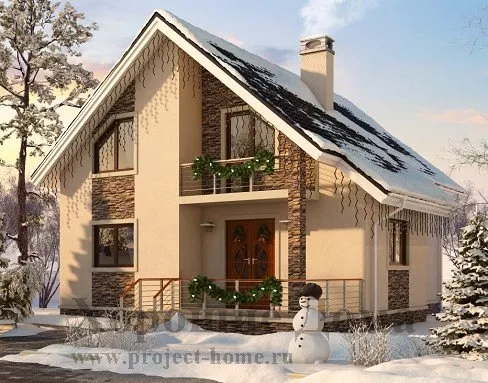 Очень уютный и колоритный загородный коттедж небольшой площади предназначен для комфортного проживания семьи в составе не более 4 человек. Дом отличается простыми архитектурными решениями, без лишнего пафоса, а красоту и неповторимость его внешнему облику придаёт оригинальный дизайн отделки фасада. Следует также отметить компактность и экономичность проекта.