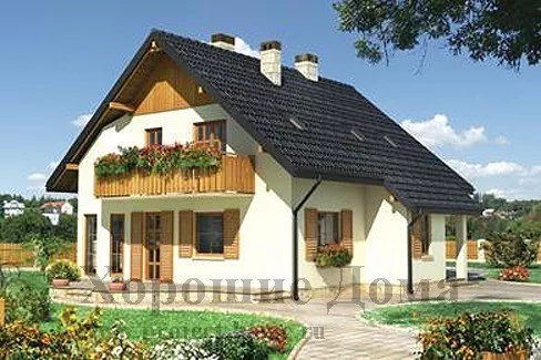 Добротный загородный коттедж в деревенском стиле идеально подойдет для проживания небольшой семьи из 2-4 человек. Внешний облик дома прост и лаконичен, деревянные ставни на окнах и деревянные панели в отделке фасада придают коттеджу особую выразительность и колорит. Дом предназначен для проживания в теплое время года, но при желании в техническом помещений справа от входа на первом этаже можно оборудовать котельную.