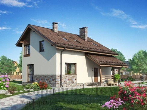 Проект двуxэтажного дома из газобетона с крутой террасой