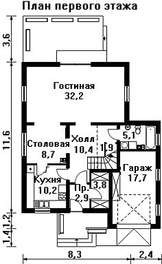 Помещения внутри дома тщательно спланированы, небольшая площадь использована очень рационально и логично. На первом этаже находится гараж на одну автомашину и зона дневного пребывания, а именно: кухня, небольшая столовая, которая плавно переходит в гостиную. Помещение гостиной светлое и просторное, из него имеется выход на крытую террасу. Также на первом этаже имеются санузел и ванная комната.