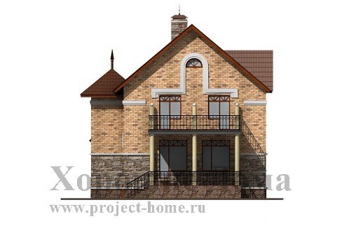 Выразительный и добротный загородный дом впечатляет своими мощными формами, крутой двухскатной крышей, гармонирующей со стильным изысканным дизайном фасада. Особый шарм внешнему облику придают эффектный эркер и ажурные перила уютных балконов и обрамления крыльца. Дом спроектирован в трёхэтажном исполнении и предназначен для постоянного проживания небольшой семьи в составе 2-4 человек.