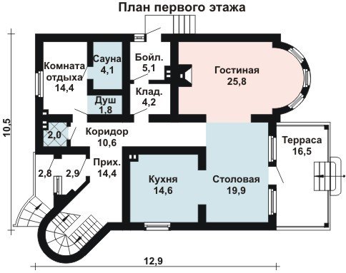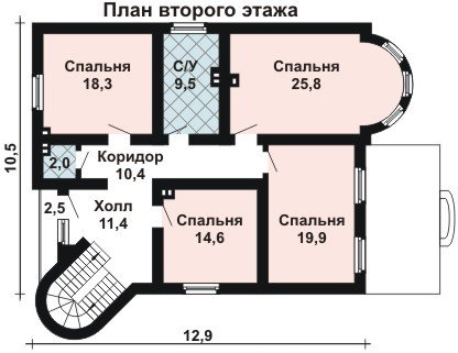Дом с винтовой лестницей 10.88x13.28 234.9 кв.м.
