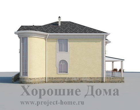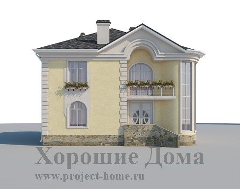 Отделка фасада - декоративная штукатурка с выступающими элементами архитектурного декора.