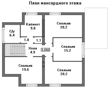 Второй мансардный этаж спроектирован для свободного размещения четырёх спальных комнат и кабинета с общим санузлом.
