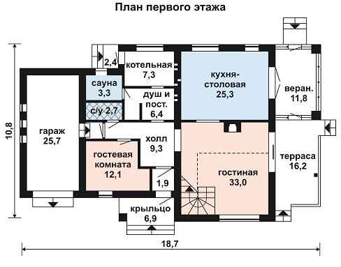 Дом из газобетона с сауной, верандой и гаражом 10.8x18.7 235.8 кв.м.
