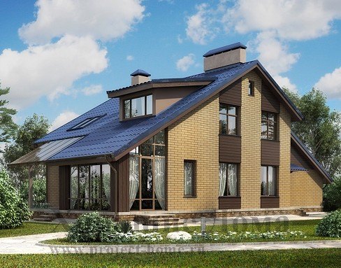 Отделка фасада - облицовочный кирпич и деревянные детали декора.