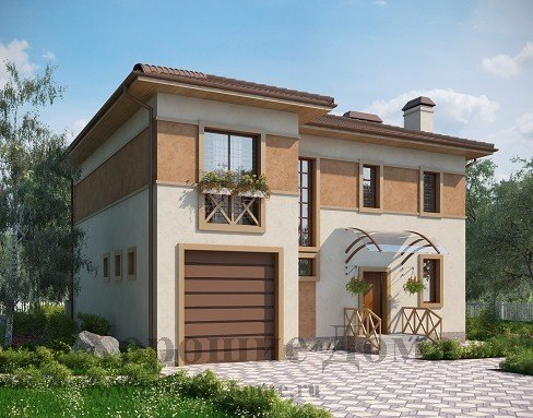 Двухэтажный дом из газобетона в стиле хай-тек с гаражом