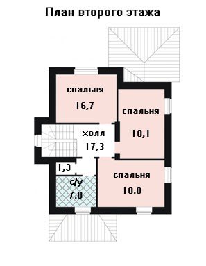 Мансардный этаж – это зона отдыха, там расположены три просторные спальни, санузел и туалет.