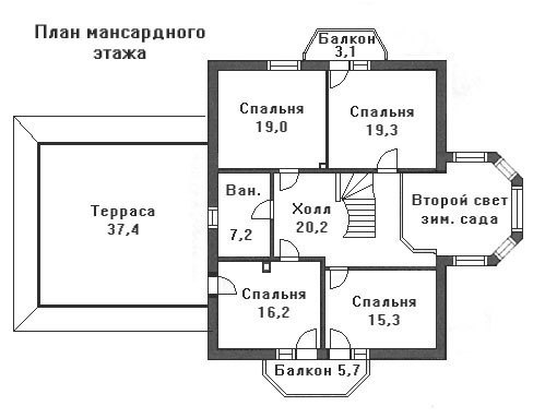 На втором этаже сосредоточены 4 спальни и ванная комната. Все спальни кроме одной имеют выходы на свои балконы или на террасу.