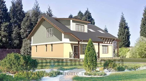 В отделке фасада применяется декоративная штукатурка, деревянные панели.