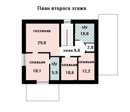 На мансардной этаже находятся три спальни, два санузла и комната отдыха общего пользования.
