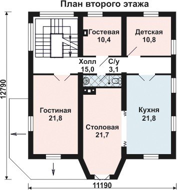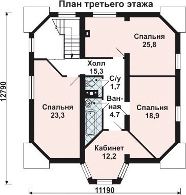 Высота этажей: Первый - 3,0м, второй - 3,0м, третий - 2,5м