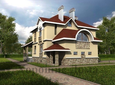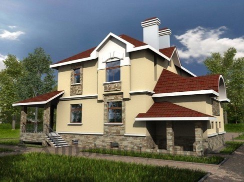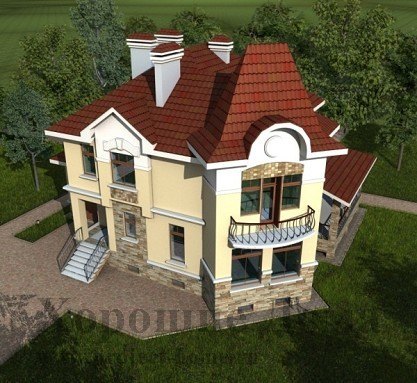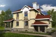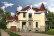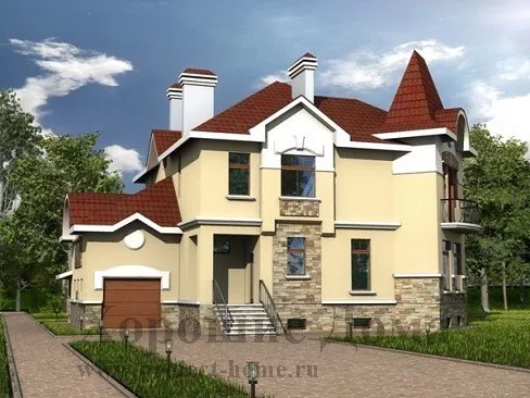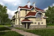 Фешенебельный современный загородный особняк примечателен своей необычной архитектурой, выразительной многоскатной кровлей, лаконичным дизайном фасада. Центром композиции является массивный двухэтажный эркер, стилизованный под башню с конусной крышей и эффектным фронтоном, элегантным французским балконом и большой площадью остекления.