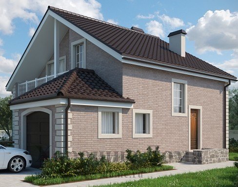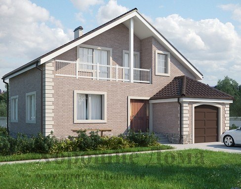Проект дома из газобетона с балконом и гаражом