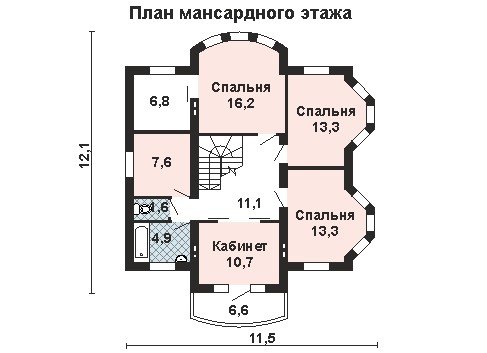 Высота этажей: Первого - 3.25 м, мансардного – 2,10/2.95 м, 3.20 м