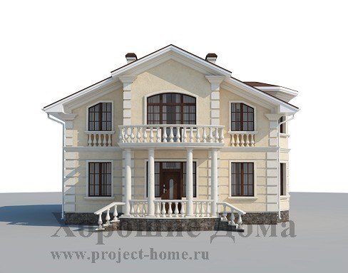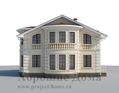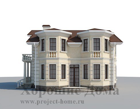 Шикарный коттедж в лучших традициях классического стиля совмещает в себе удобную планировку и величественность архитектуры при достаточно небольших размерах общей площади – 182,5 кв. м. Два красивейших эркера высотой в два этажа создают атмосферу царственности и утонченного стиля в комнатах дома.