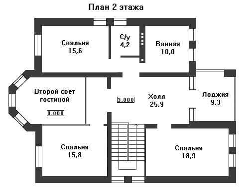Высота первого этажа - 3.0 м ,