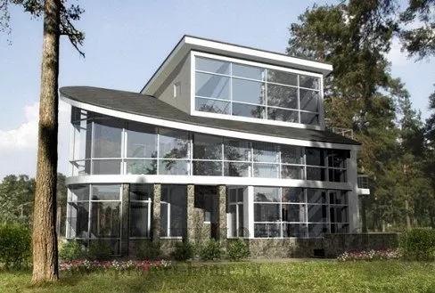 Современный по стилю трёхэтажный дом с мансардой и цокольным этажом (итого, 4 этажа). Панорамное остекление придаёт футуристический вид. Из-за панорамных окон дом полон света и пронизан чувством теплоты. Цокольный этаж состоит из кладовой и комнаты отдыха, которая позволит Вам расслабиться и уйти от забот. На первом этаже кухня, холл, гостиная и столовая объединены, что, без сомнений, даёт выигрыш в визуальном пространстве. На этаже также находится уютная спальня.