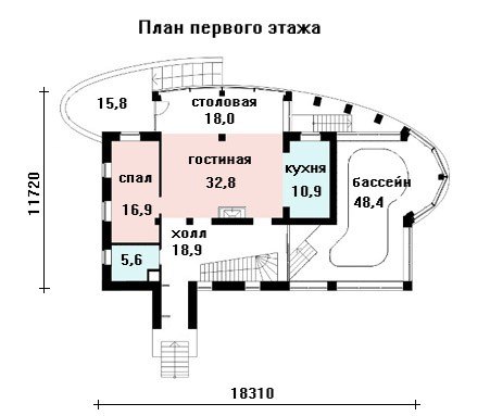 Основным преимуществом выступает бассейн, который, несомненно, поможет Вам расслабиться как душой, так и телом. Планировка второго этажа включает в себя место для работы и отдыха. Рабочий кабинет, спальни, из которых открывается неповторимый вид. Эстетики и гармонии дому придаёт зимний сад. А бильярдная на мансардном этаже поможет нескучно провести время с друзьями.