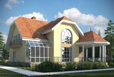 Современный загородный коттедж с элементами конструктивизма оставляет неизгладимое впечатление своими необычными формами, изысканной отделкой фасада, выразительным архитектурным решением двухскатной кровли, логическим продолжением одного из скатов которой является оригинальный навес для двух автомашин и террасы. Дом предназначен для постоянного проживания небольшой семьи в составе 2-4 человек.