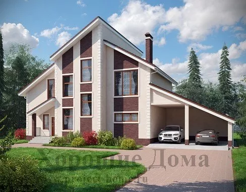 Дом из газобетона с навесом для машины 11.95x21.5 283 кв.м.