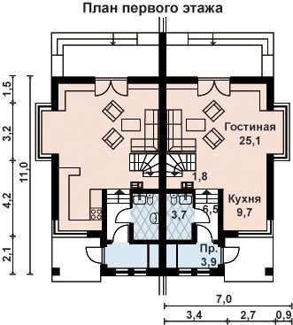 Дом из газобетона под ключ, дуплекс 11x14, проект и цена