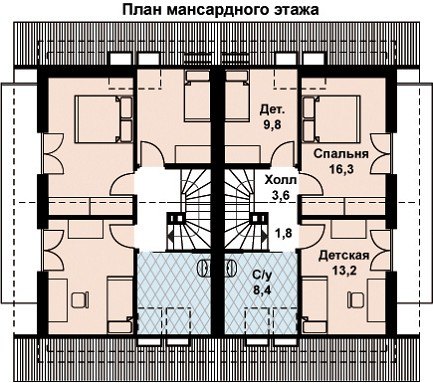 Второй этаж представляет собой спальную зону, разделенную на три спальни и просторный общий санузел.