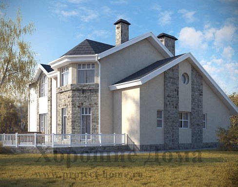 Дом из газобетона с оригинальной двухуровневой крышей 301.7 кв.м.
